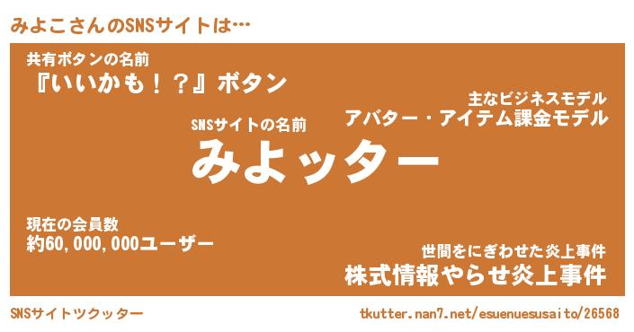 | ファンタジー風あだ名 | 『ミヨフェル』『エターナルミヨコー』 |