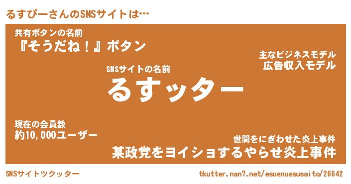 | 肩書あだ名 | 『るすぴー社長』『るすぴー国家主席』 |