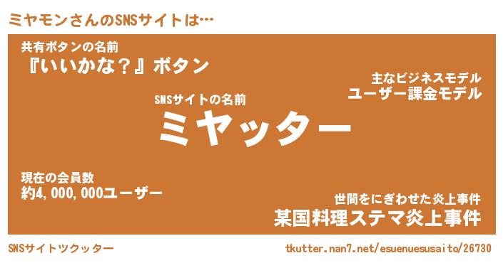 | 胡散臭い通販商品みたいなあだ名 | 『億万長者になれる霊験あらたかなお札…その名も「ミヤモン」』 |
