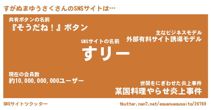 | 胡散臭い通販商品みたいなあだ名 | 『モテモテ間違いなし水晶球…その名も「すがぬまゆうさく」』 |