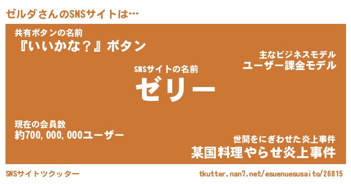 | 肩書あだ名 | 『ゼルダ社長』『ゼルダ国家主席』 |