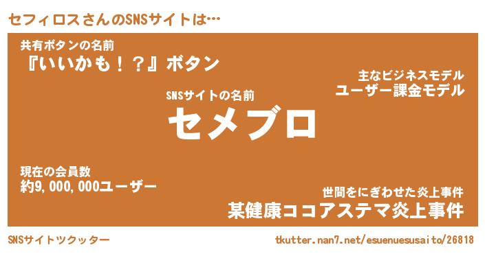 | ファンタジー風あだ名 | 『セフフェル』『エターナルセフィロスー』 |
