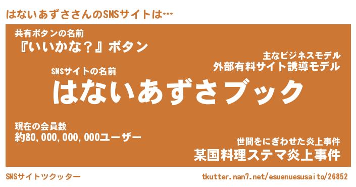 | 胡散臭い通販商品みたいなあだ名 | 『億万長者になれる霊験あらたかなお札…その名も「はないあずさ」』 |