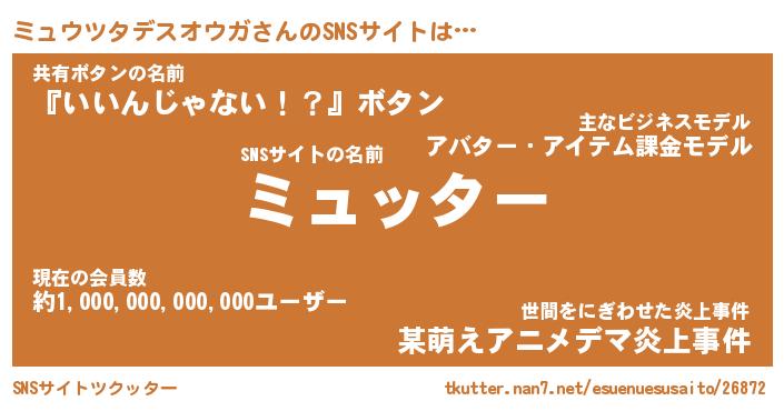 | 男性向けラノベタイトル風あだ名 | 『ミュウツタデスオウガアートオンライン』 |