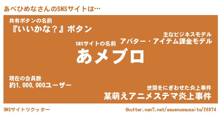 | 意味不明あだ名 | 『ペロリンあべひめな』 |