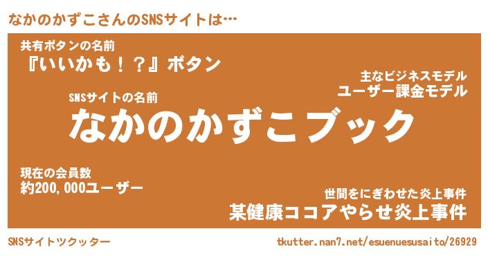 | 男性向けラノベタイトル風あだ名 | 『ナカノカズコアートオンライン』 |