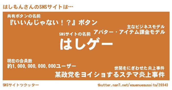 ヘコむあだ名 | 『はしにゅー』『レバニラ』『はしを』 |