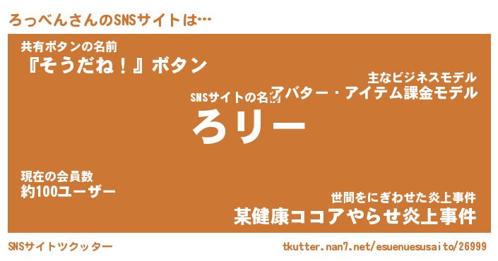 | 意味不明あだ名 | 『ペロリンろっべん』『永久保存ろっべん』 |