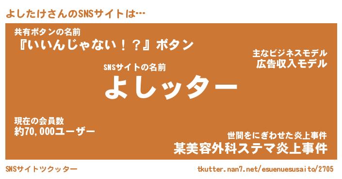 | ポケモン風あだ名 | 『ヨシチュウ』『ヨシタダネ』 |