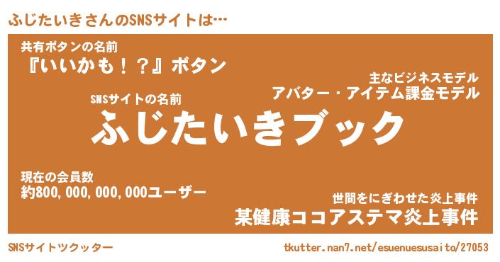 | ヘコむあだ名 | 『ふじにゅー』『酢こんぶ』『ふじを』 |