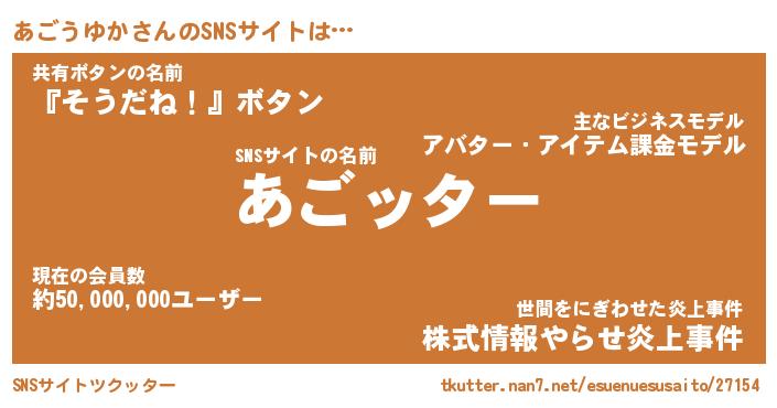 | 胡散臭い通販商品みたいなあだ名 | 『億万長者になれる水晶球…その名も「あごうゆか」』 |