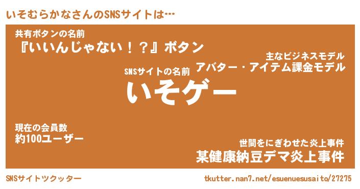 | ツイッター | いそむらかなさんのツイッターID『kikurage_man』 |