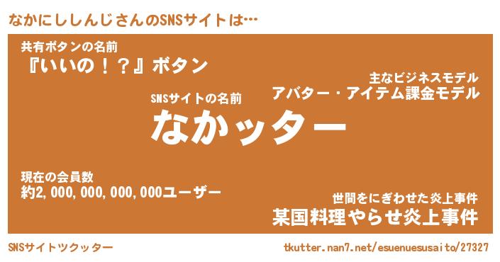 | 胡散臭い通販商品みたいなあだ名 | 『億万長者になれるブレスレット…その名も「なかにししんじ」』 |