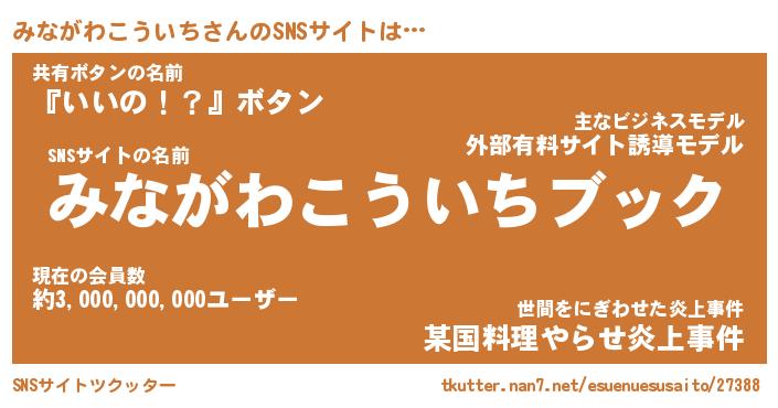 | 胡散臭い通販商品みたいなあだ名 | 『億万長者になれる霊験あらたかなお札…その名も「みながわこういち」』 |