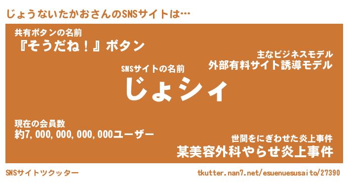 | 肩書あだ名 | 『じょうないたかお社長』 |