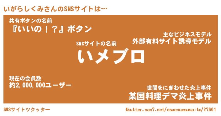 | 男性向けラノベタイトル風あだ名 | 『イガラシクミアートオンライン』 |
