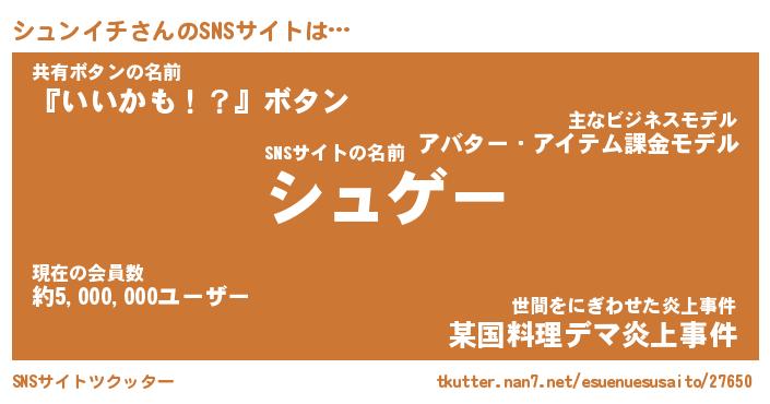 | ファンタジー風あだ名 | 『シュフェル』『エターナルシュンイチー』 |