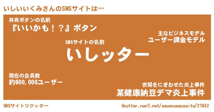 | 男性向けラノベタイトル風あだ名 | 『イシイイクミアートオンライン』 |