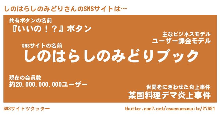 | 胡散臭い通販商品みたいなあだ名 | 『億万長者になれるブレスレット…その名も「しのはらしのみどり」』 |