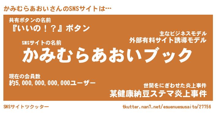 | 肩書あだ名 | 『かみむらあおい御曹司』 |