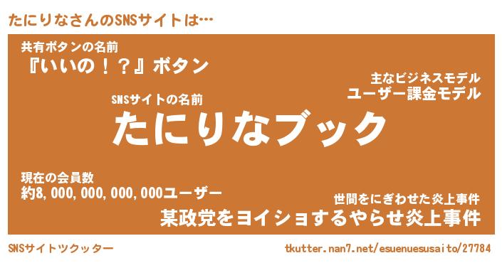 | ファンタジー風あだ名 | 『タニフェル』『エターナルタニリナー』 |