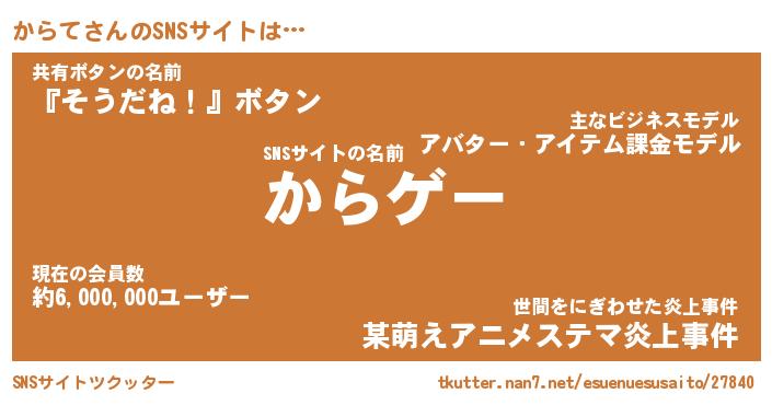 | ヘコむあだ名 | 『からにー』『酢こんぶ』『からを』 |