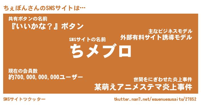 | 意味不明あだ名 | 『ペロリンちぇぼん』『永久保存ちぇぼん』 |
