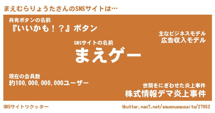 | 伝説のあだ名 | 『伝説のスナイパーまえむらりょうた』 |