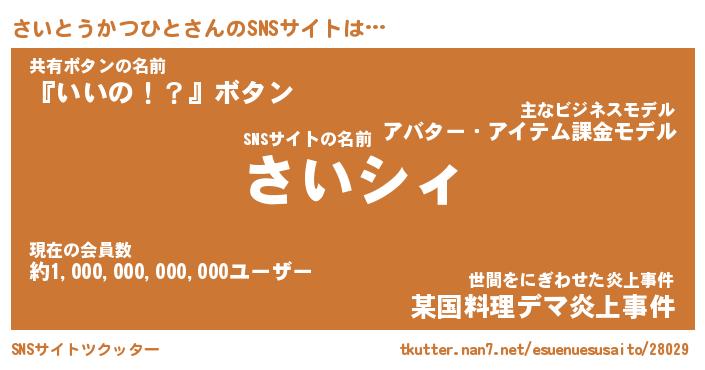 | 男性向けラノベタイトル風あだ名 | 『さいとうかつひとの憂鬱』 |