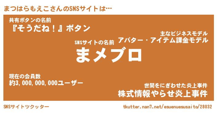 | 胡散臭い通販商品みたいなあだ名 | 『モテモテ間違いなし霊験あらたかなお札…その名も「まつはらもえこ」』 |