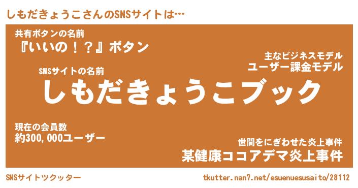 | 肩書あだ名 | 『しもだきょうこCEO』 |