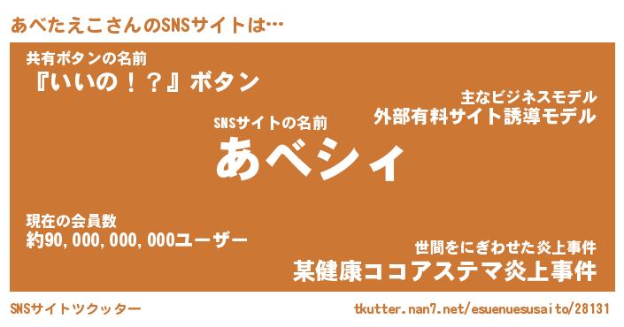 | 胡散臭い通販商品みたいなあだ名 | 『必ず成功する霊験あらたかなお札…その名も「あべたえこ」』 |