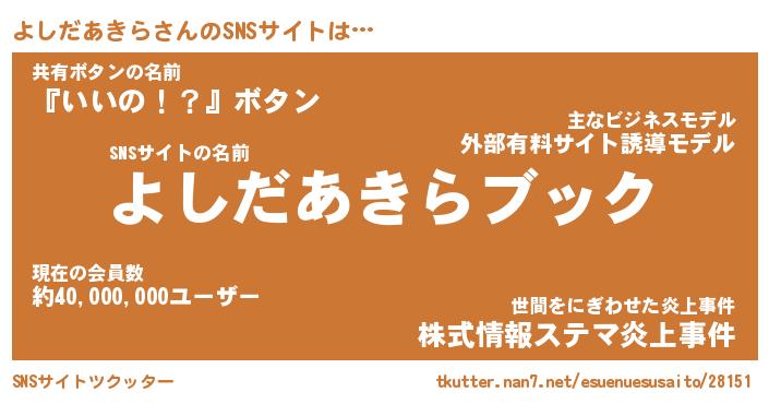 | 肩書あだ名 | 『よしだあきら御曹司』 |