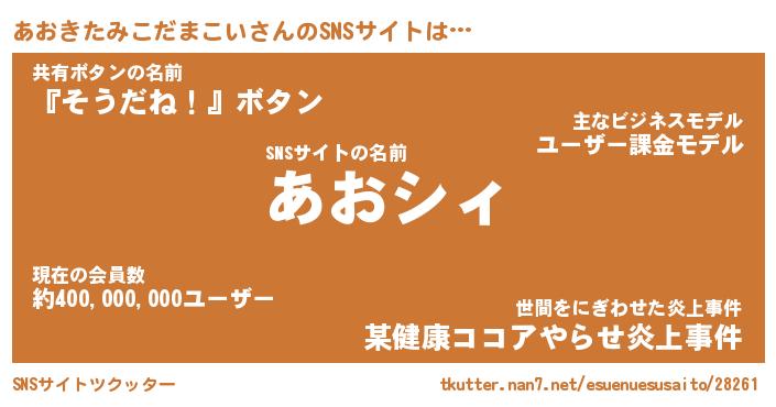 | 女子向けラノベタイトル風あだ名 | 『(仮)あおきたみこだまこいのやんごとなき事情』 |