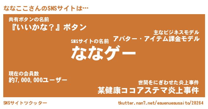 | ヘコむあだ名 | 『ななもー』『牛乳』『なな太郎』 |