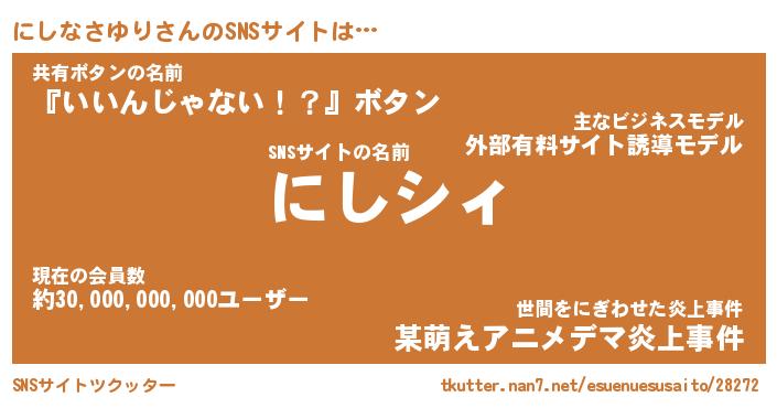 | ポケモン風あだ名 | 『ニシチュウ』『ニシナダネ』 |