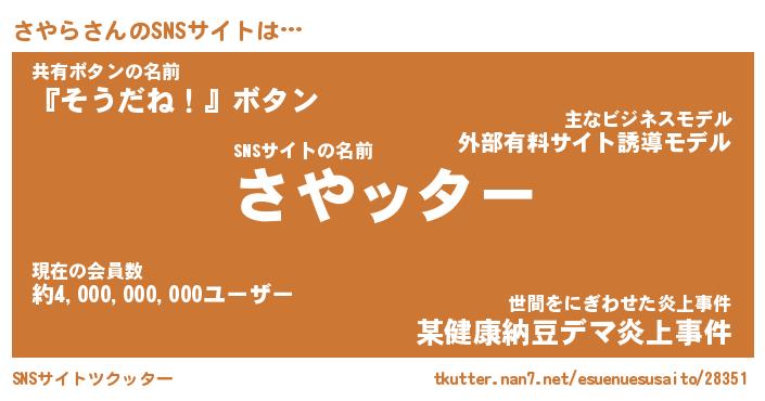 | ファンタジー風あだ名 | 『サヤフェル』『エターナルサヤラー』 |