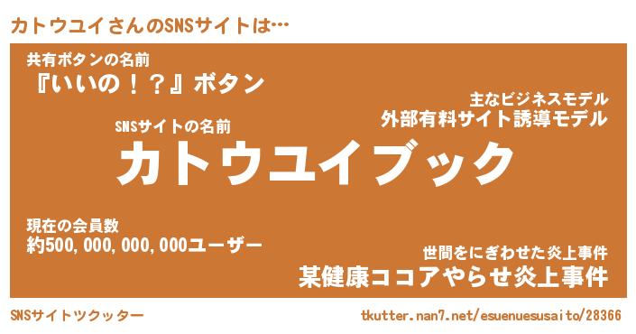 | 肩書あだ名 | 『カトウユイCEO』『カトウユイ総理大臣』 |