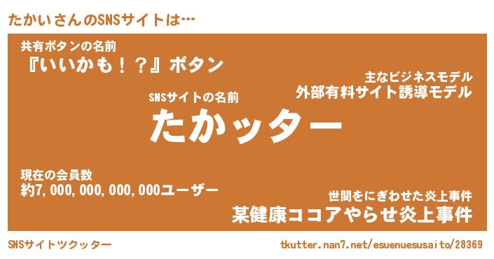 | ファンタジー風あだ名 | 『タカフェル』『エターナルタカイー』 |