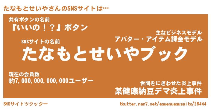 | 肩書あだ名 | 『たなもとせいや社長』 |