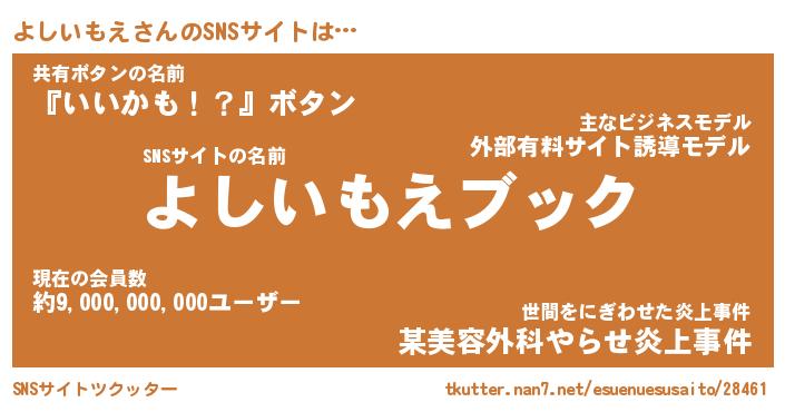 | 胡散臭い通販商品みたいなあだ名 | 『億万長者になれるブレスレット…その名も「よしいもえ」』 |