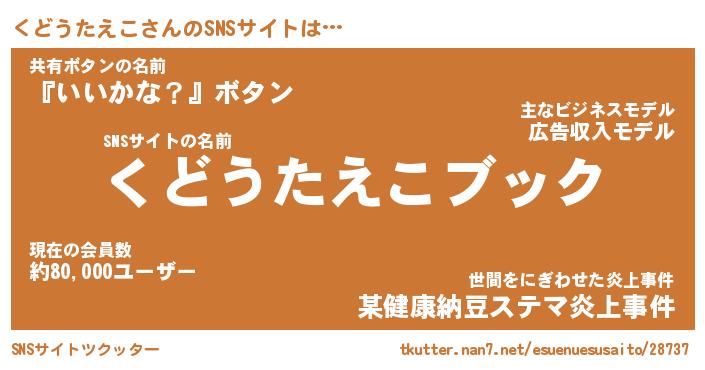 | 男性向けラノベタイトル風あだ名 | 『クドウタエコアートオンライン』 |