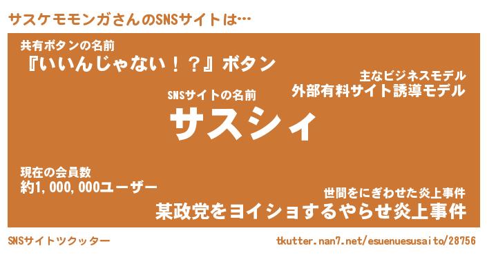 | 男性向けラノベタイトル風あだ名 | 『サスケモモンガの憂鬱』 |