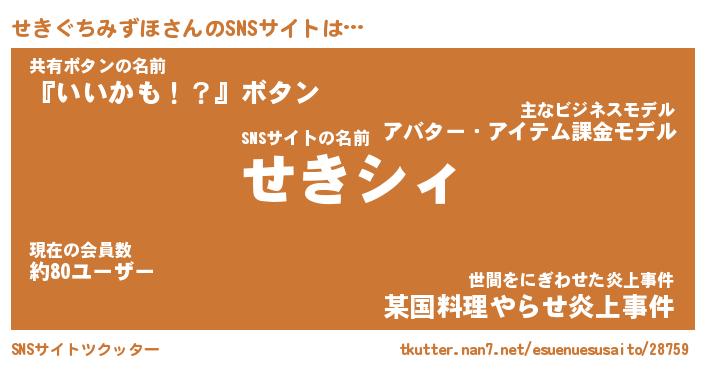 | 女子向けラノベタイトル風あだ名 | 『(仮)せきぐちみずほのやんごとなき事情』 |