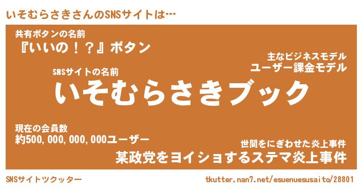 | 男性向けラノベタイトル風あだ名 | 『イソムラサキアートオンライン』 |