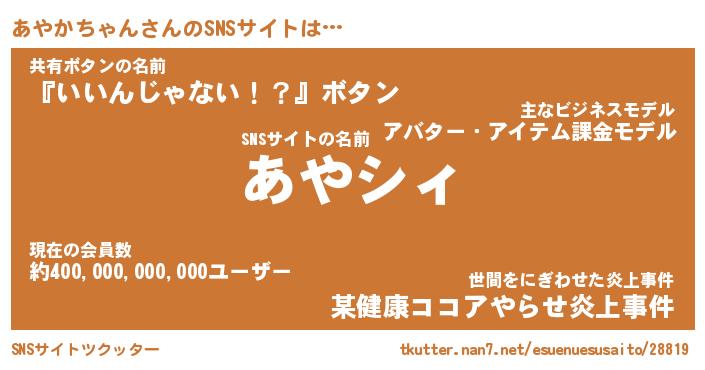 | 胡散臭い通販商品みたいなあだ名 | 『必ず成功する霊験あらたかなお札…その名も「あやかちゃん」』 |
