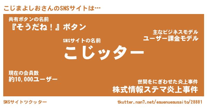 | 胡散臭い通販商品みたいなあだ名 | 『億万長者になれる水晶球…その名も「こじまよしお」』 |