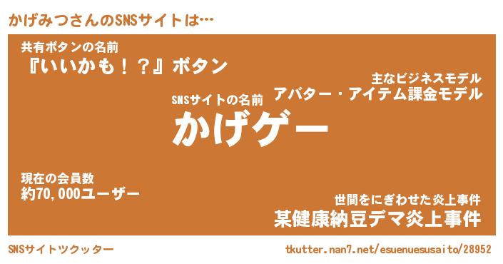 | ヘコむあだ名 | 『かげっふぃ~』『豆乳』 |