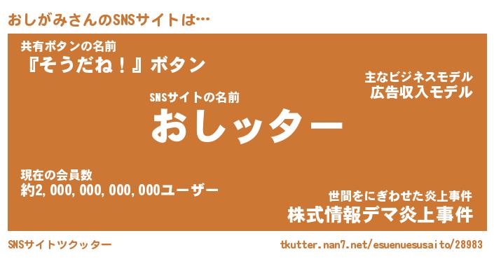 | 胡散臭い通販商品みたいなあだ名 | 『億万長者になれるブレスレット…その名も「おしがみ」』 |