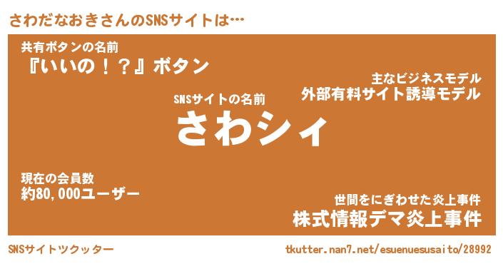 | ポケモン風あだ名 | 『サワチュウ』『サワダダネ』 |